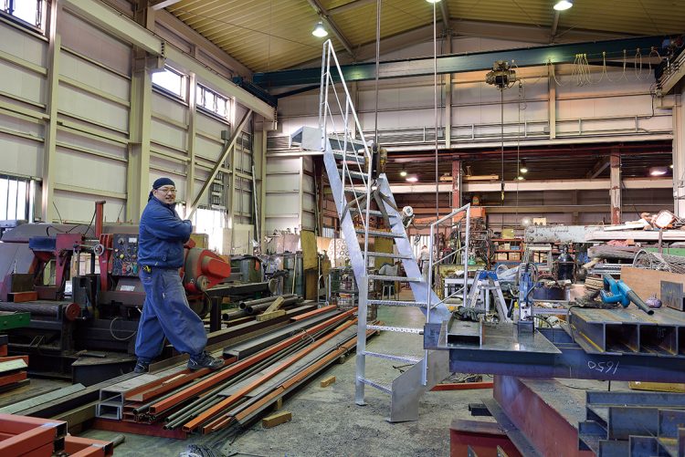 現在は製鉄所の溶鉱炉の部品と、階段などの軽量鉄骨加工を主に加工しています。階段などの鉄骨は、現場へ出向いて溶接・設置作業まで行います。また、当社は鉄のプロフェッショナルを目指し、堅実な仕事内容で社員一同頑張っています。