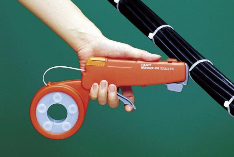 当社が持つ特殊な押し出し成形技術を応用した自社商品「小型結束機しめしめ」を1987年に開発。国内だけでなく海外へも出荷・販売しています。