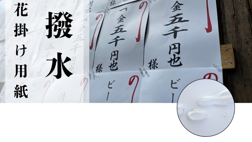 撥水花掛け用紙には特殊な撥水加工が施されており、水や湿気を弾くため、紙がふやけたり破れたりしにくいのが特長です。