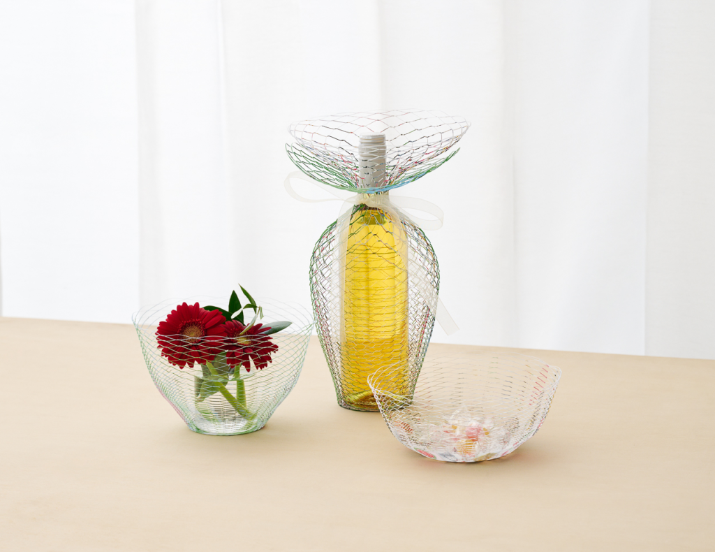 軽やかでありながら存在感のあるそのフォルムは、果物を入れる器や花器のカバー、小物入れなど、用途を限定せず自由な発想で暮らしに寄り添います。