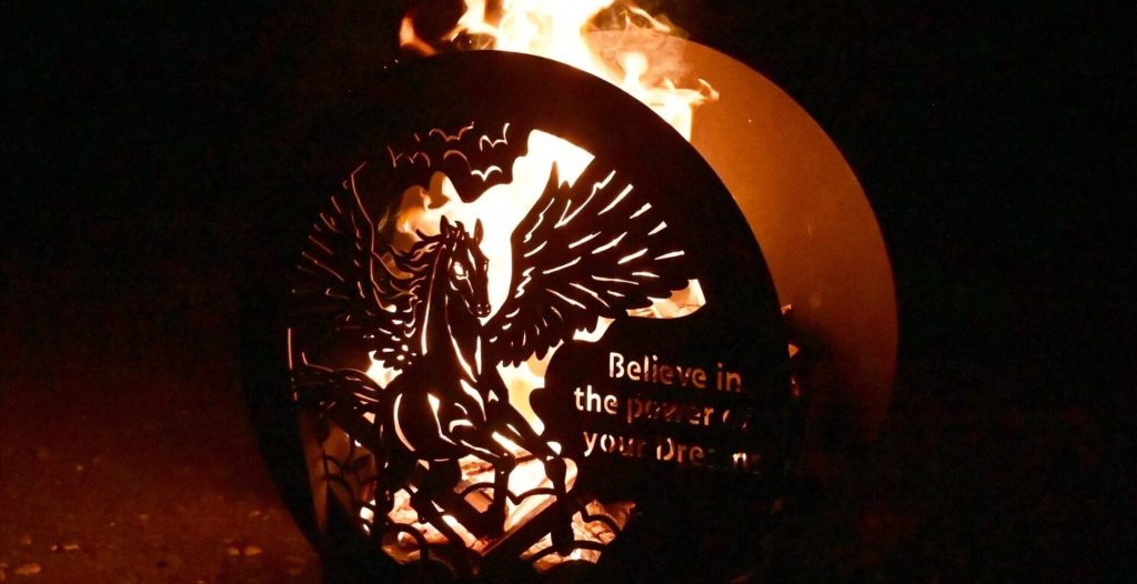 月・星・ハート、チワワ、猫などの模様が炎と一緒に浮かび上がり、幻想的な時間を演出。